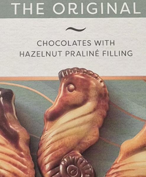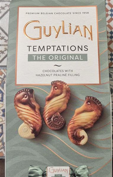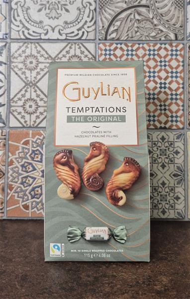 115g box of Guylain temptations, the Original Seashells. Chocolates with Hazelnut praline filling.
